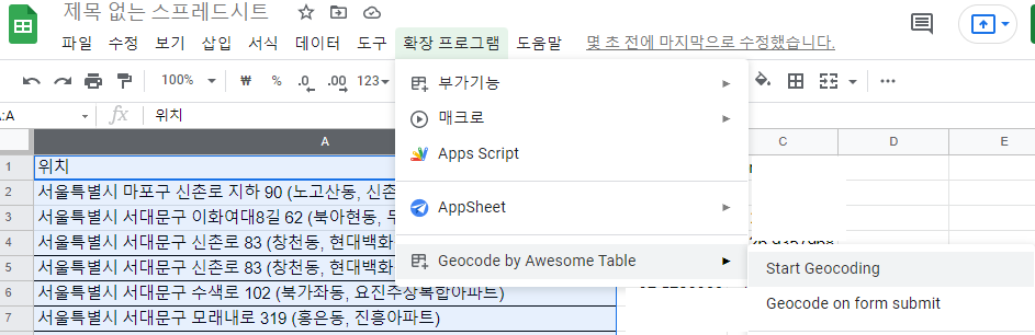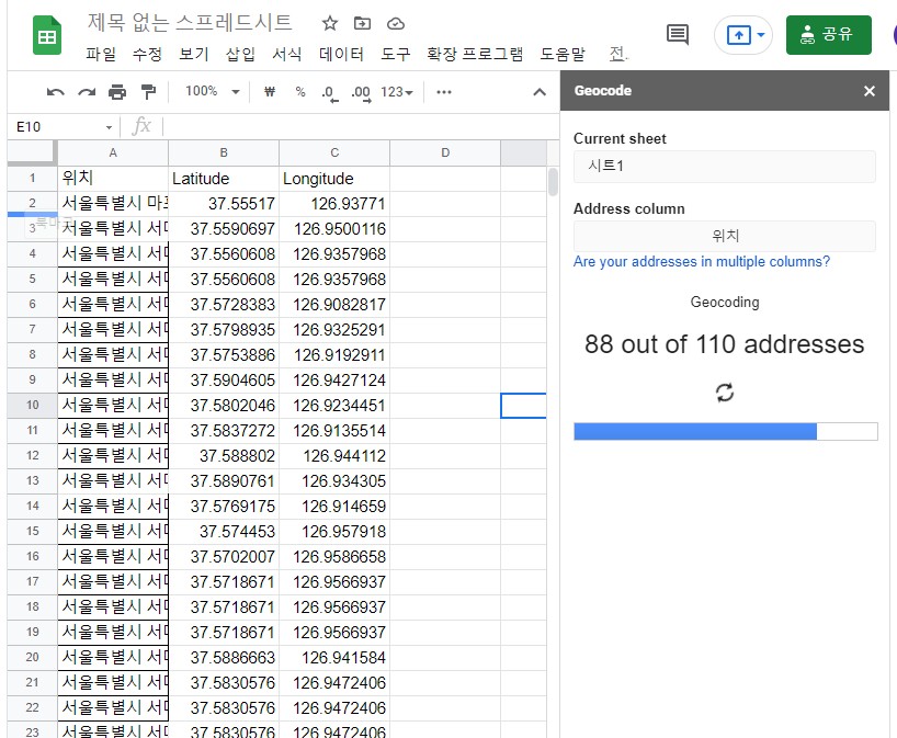 [geocoding] 구글드라이브를 이용한 주소 위경도로 변환 본문