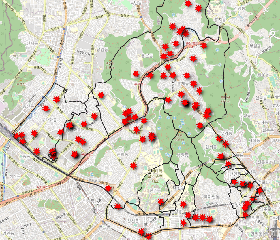 튀는 곳 없이 모두 구역 내에 찍히는 것이 확인된다.