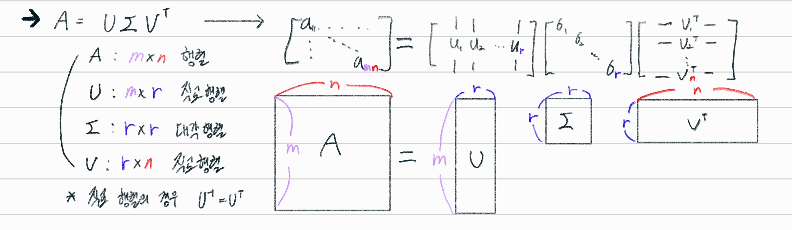 SVD는 행렬을 분해하여 중요한 요소만을 뽑아낼때 사용된다.