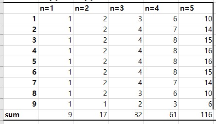 n = 5 까진 j==0 일떄 dp[i-1][j-1] + i 가 성립하지만 n=6 부턴 성립하지 않는다...